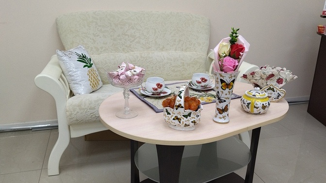 — ароматерапия (в осенне-зимний период арома-лампа с эфирными маслами: лаванда, левзея, цитронелла, бергамот или микс масел «Романтика», летом — ароматические свечи: ваниль, орхидея и роза);